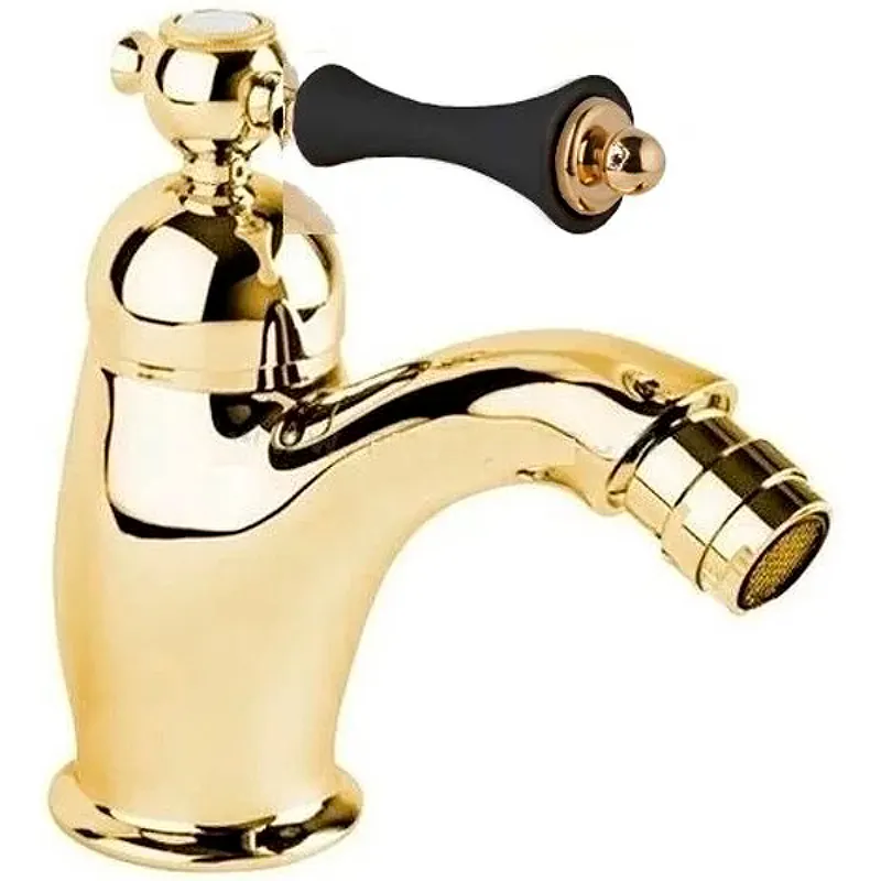Смеситель для биде Cezares Margot MARGOT-BSM1-03/24-N.Характеристики: Цвет: золото 24 карат. Цвет ручки: черный. Материал: латунь. Управление: однорычажное. Механизм: керамический картридж. Излив: фиксированный. Стандарт подводки: G 1/2. Тип подводки: гибкая. Аэратор. Рабочий интервал давления в водопроводной сети: 0.5-6.0 Атм. Монтаж: на биде. В комплекте поставки: Смеситель для биде. Гибкая подводка. Донный клапан.