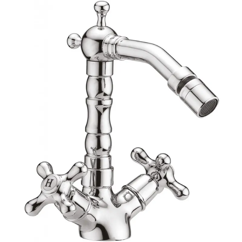 Смеситель для биде Cezares Retro RETRO-C-BS2-01 с донным клапаном. Поможет в создании изысканного Викторианского стиля ванной комнаты эпохи XIX века, который подчеркнет Ваш превосходный эстетический вкус. Цвет: хром. Материал: высококачественный латунный сплав, который обеспечивает прочность, устойчивость к влаге и температурным перепадам. Крестообразные вентили позволяют точно регулировать температуру и напор воды. Механизм: керамические кран-буксы. Фиксированный излив с аэратором на шарнире. Стандарт подключения: G 1/2. Монтаж: на 1 отверстие. В комплекте поставки: смеситель, гибкая подводка, донный клапан.