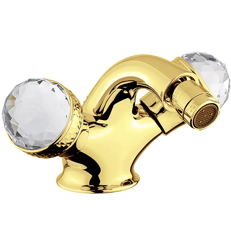 Смеситель для биде Migliore Axo 18503 Хром.Характеристики: Цвет: золото. Материал: высококачественный латунный сплав. Специальное лаковое покрытие защищает внешнюю часть смесителя от быстрого износа. Двухвентильная система управления. Ручки инкрустированы кристаллами Swarovski. Керамические кран-буксы. Фиксированный излив с аэратором. Защита от обратного потока. Совместим с проточным водонагревателем. Стандарт подключения: G 1/2. Монтаж: на 1 отверстие. В комплекте поставки: смеситель, гибкая подводка.