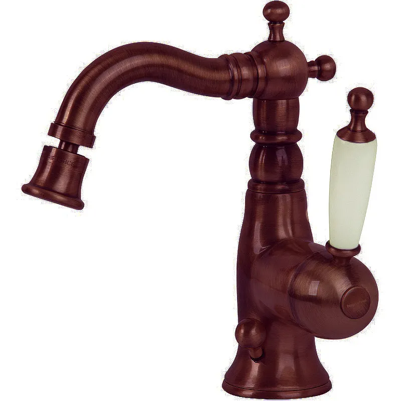 Смеситель для биде Migliore Oxford 19111.Характеристики: Цвет: Тосканская бронза. Материал: высококачественный латунный сплав. Специальное лаковое покрытие защищает внешнюю часть смесителя от быстрого износа. Однорычажная система управления. Утонченная ручка выполнена в белом цвете. Керамический картридж. Поворотный излив с аэратором. Защита от обратного потока. Совместим с проточным водонагревателем. Стандарт подключения: G 1/2. Монтаж: на 1 отверстие. В комплекте поставки: смеситель, гибкая подводка.