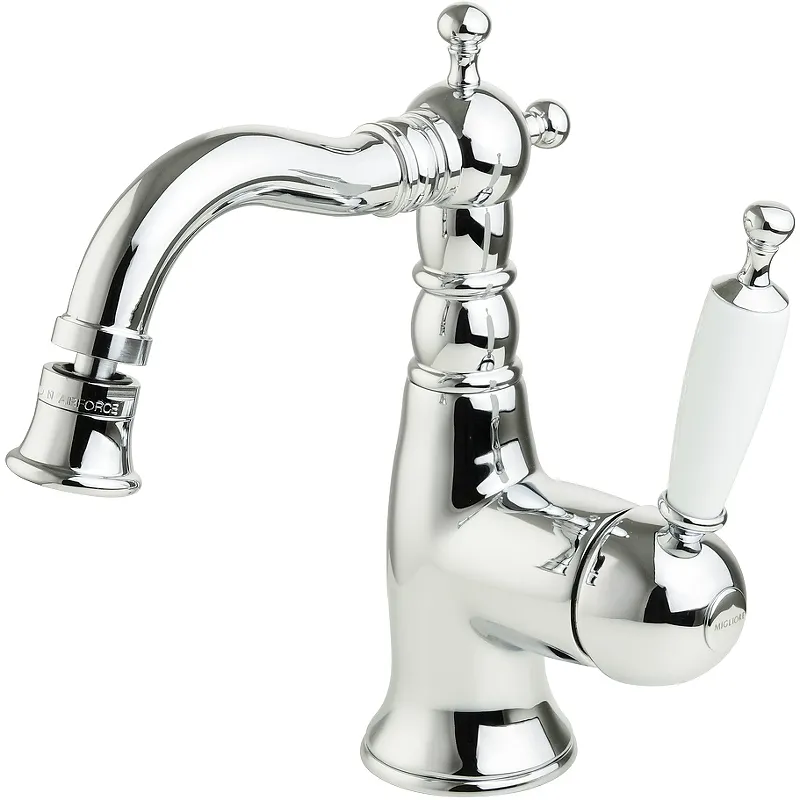 Смеситель для биде Migliore Oxford 19121.Характеристики: Цвет: хром. Материал: высококачественный латунный сплав. Специальное лаковое покрытие защищает внешнюю часть смесителя от быстрого износа. Однорычажная система управления. Утонченная ручка выполнена в белом цвете. Керамический картридж. Поворотный излив с аэратором. Защита от обратного потока. Совместим с проточным водонагревателем. Стандарт подключения: G 1/2. Монтаж: на 1 отверстие. В комплекте поставки: смеситель, гибкая подводка.