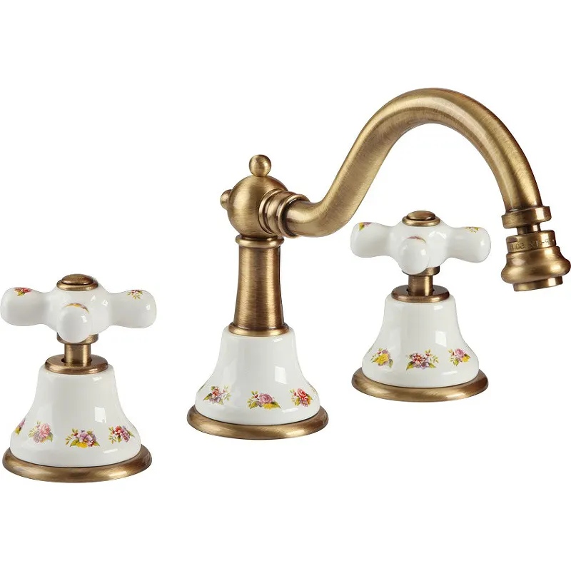 Смеситель для биде Migliore Provance 19461.Станет изысканным украшением Вашей ванной комнаты. Поможет в создании эстетичного и благородного дизайна помещения в классическом или ретро стиле. Отличается округлой формой корпуса и керамическими ручками. Итальянское качество по приемлемой цене.Характеристики: Цвет корпуса: бронза. Цвет ручек: белый с декором. Материал: латунь, обеспечивает прочность, устойчивость к влаге и температурным перепадам. Специальное лаковое покрытие защищает внешнюю часть смесителя от быстрого износа. Защита от обратного потока. Совместимость с проточным водонагревателем. Двухвентильная система управления. Крестообразные ручки выполнены из керамики. Керамические кран-буксы. Поворотный излив с аэратором. Удобный в обращении нажимной донный клапан с системой click-clack. Стандарт подключения: G 1/2. Монтаж: на биде. Отверстий для монтажа:3. В комплекте поставки: Смеситель. Гибкая подводка. Донный клапан.