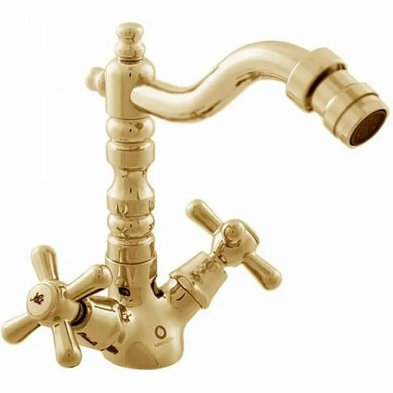 Смеситель для биде Rav Slezak Morava retro MK120.5/9Z.Характеристики: Цвет: золото. Материал: латунь. Механизм: керамическая кран-букса. Управление: двухвентильное. Излив: поворотный. Аэратор Neoperl. Стандарт подводки: 1/2. Отверстия для монтажа: 1. Монтаж: на биде. В комплекте поставки: Смеситель. Гибкая подводка 35 см. Инструкция.