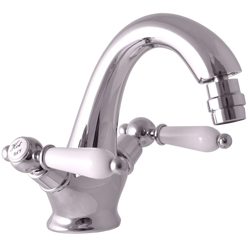 Смеситель для биде Rav Slezak Morava retro MK543.5.Характеристики: Цвет: хром. Материал: латунь. Ручки белые из керамики. Механизм: керамическая кран-букса. Управление: двухвентильное. Излив: фиксированный. Аэратор. Стандарт подводки: 1/2. Тип подводки: гибкая. Отверстия для монтажа: 1. Монтаж: на биде. В комплекте поставки: Смеситель. Гибкая подводка 35 см. Инструкция.