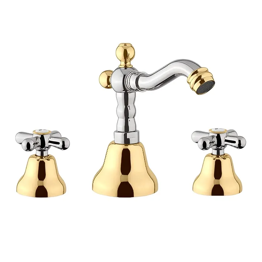 Смеситель для биде Webert Armony AM710202017, хром/золото. Смеситель на 3 отверстия. Стиль ретро.