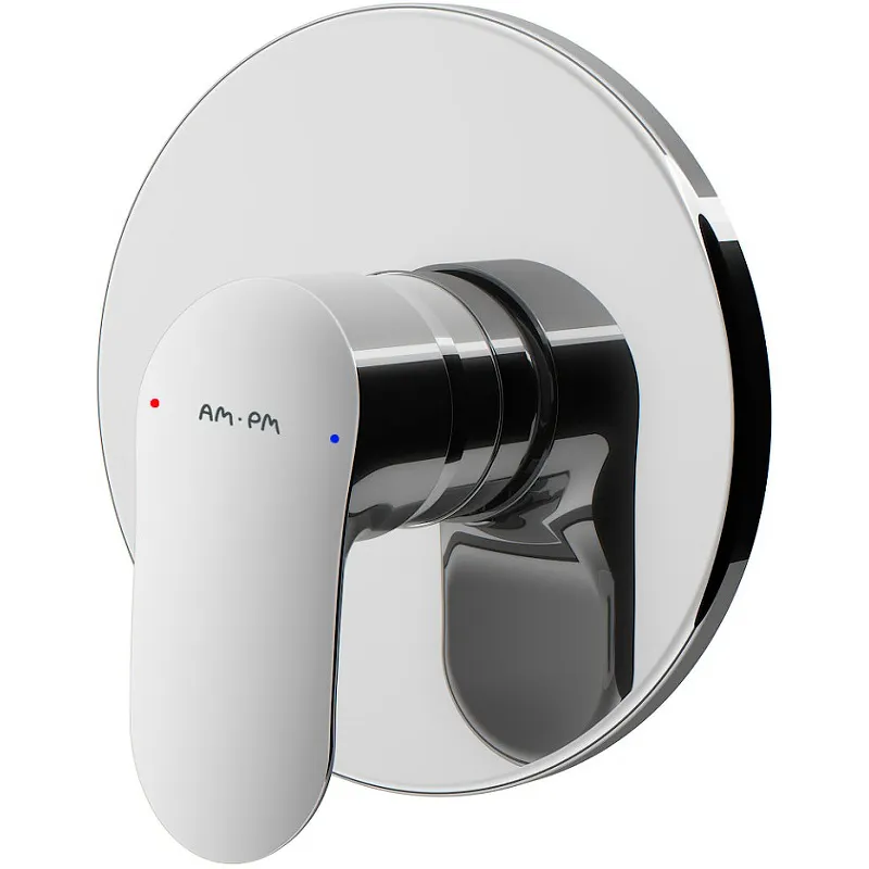Встраиваемый смеситель для душа AM.PM Like F8075000.Лаконичный дизайн смесителя АМ ПМ Лайк превосходно дополнит большинство современных интерьеров ванных комнат. Корпус изготовлен из безопасной латуни с пониженным содержанием свинца. Гладкое глянцевое покрытие цвета хром устойчиво к потускнению, долго сохраняет первоначальный цвет и блеск. Однорычажное управление. Встраиваемый монтаж. В комплекте поставки: внешняя часть смесителя.
