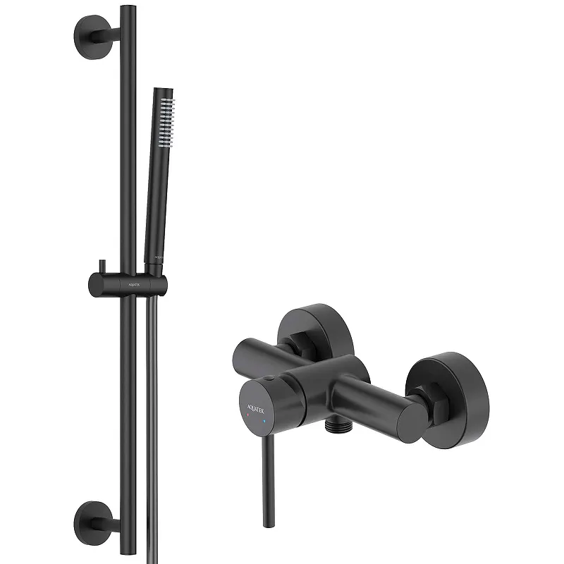 Смеситель для душа Aquatek Европа AQ1332MB с душевым гарнитуром.Характеристики:Смеситель для душа: Цвет: черный матовый. Материал: латунь. Управление: однорычажное, система регулировки силы струи и температуры воды. Механизм: керамический картридж Citec 35 мм. Стандарт подводки: G 1/2. Монтаж: на стену. Душевой гарнитур: Цвет: черный матовый. Материал ручного душа: латунь. Количество режимов струи ручного душа: 1. Передвижной держатель лейки. Душевой шланг из поливинилхлорида (ПВХ), длиной 1500 мм. Материал душевой штанги: латунь. Монтаж: на стену. В комплекте поставки: Смеситель для душа Aquatek Европа AQ1360MB: S-образные эксцентрики; декоративные отражатели. Душевой гарнитур Aquatek Европа AQ2012MB: ручной душ; держатель ручного душа; душевая штанга; душевой шланг; монтажный комплект.