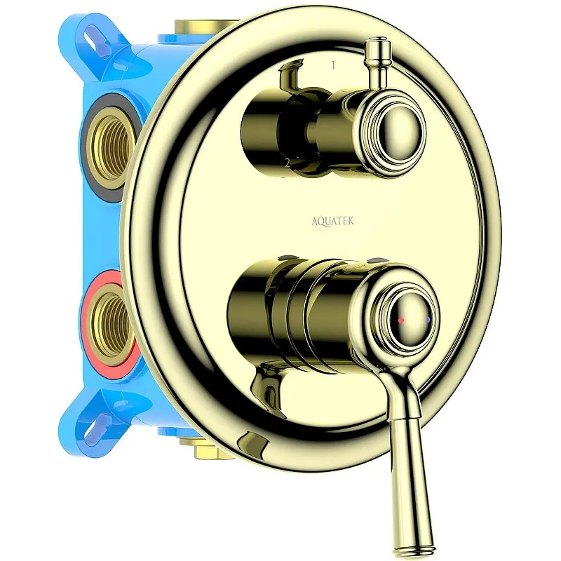 Смеситель для душа Aquatek Классик AQ1547PG — идеальное решение для вашего душа. Этот смеситель выполнен в современном стиле и сочетает в себе элегантность и функциональность. Изготовленный из латуни в полированном золоте, он станет ярким акцентом в вашей ванной комнате. Встраиваемый монтаж и однорычажное управление обеспечивают удобство использования, а система регулировки силы струи и температуры воды делает его незаменимым выбором.