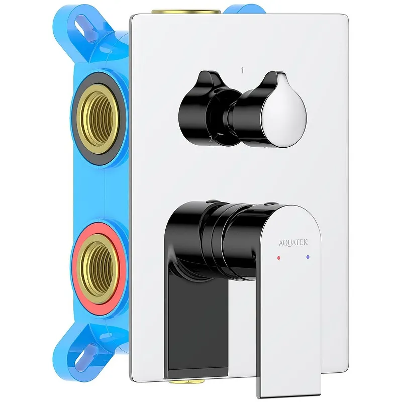 Смеситель для душа Aquatek Лира AQ1447CR Хром — идеальное решение для создания современного интерьера в ванной комнате. Этот однорычажный смеситель из латуни с глянцевой поверхностью обеспечивает надежную и стильную эксплуатацию. Управление системой регулировки силы струи и температуры воды осуществляется легко и удобно благодаря встроенному керамическому картриджу Citec 35 мм. Данный смеситель для душа подходит для встраиваемого монтажа и имеет стандарт подводки G 1/2.