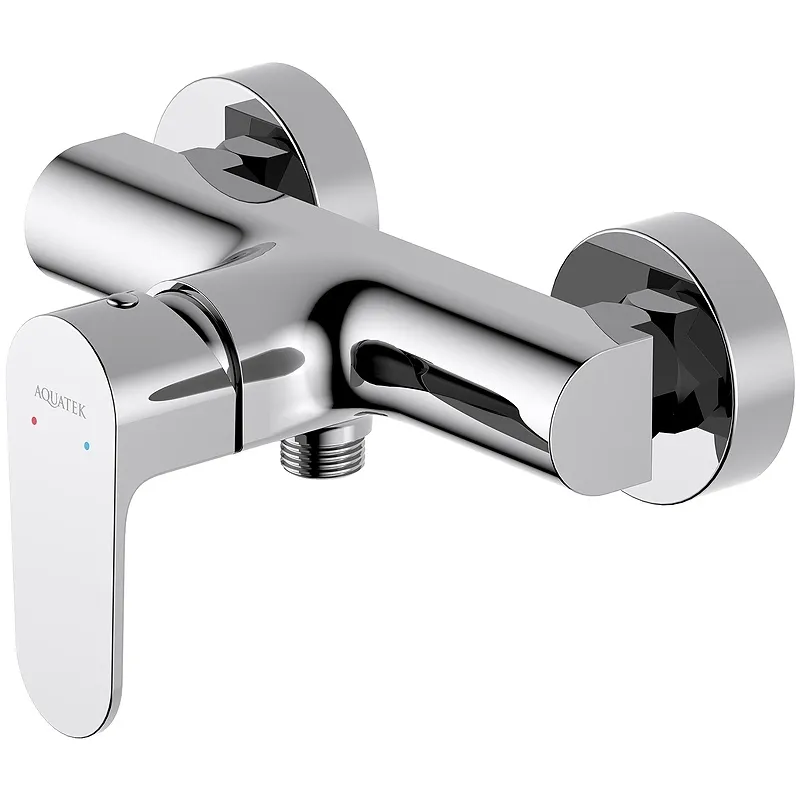 Смеситель для душа Aquatek Оберон AQ1260CR.Характеристики: Цвет: хром. Материал: латунь. Управление: однорычажное, система регулировки силы струи и температуры воды. Механизм: керамический картридж Citec 35 мм. Стандарт подводки: G 1/2. Отверстия для монтажа: 2. Монтаж: на стену. В комплекте поставки: Смеситель для душа. S-образные эксцентрики. Декоративные отражатели.