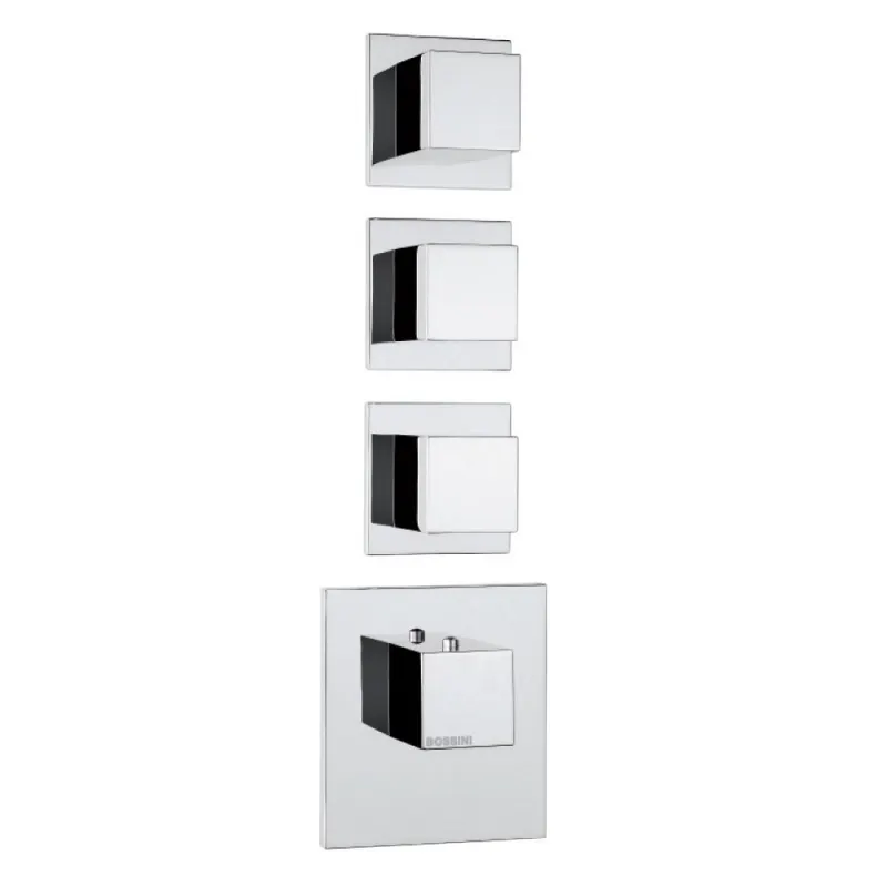Смеситель для душа Bossini Cube Outlets Z032205.030 с термостатом выполнен из высококачественной латуни и представлен в глянцевом хроме, что обеспечивает долговечность и стильный внешний вид. Этот встраиваемый смеситель с термостатическим управлением идеально подходит для современных ванных комнат, предлагая удобство и безопасность использования.