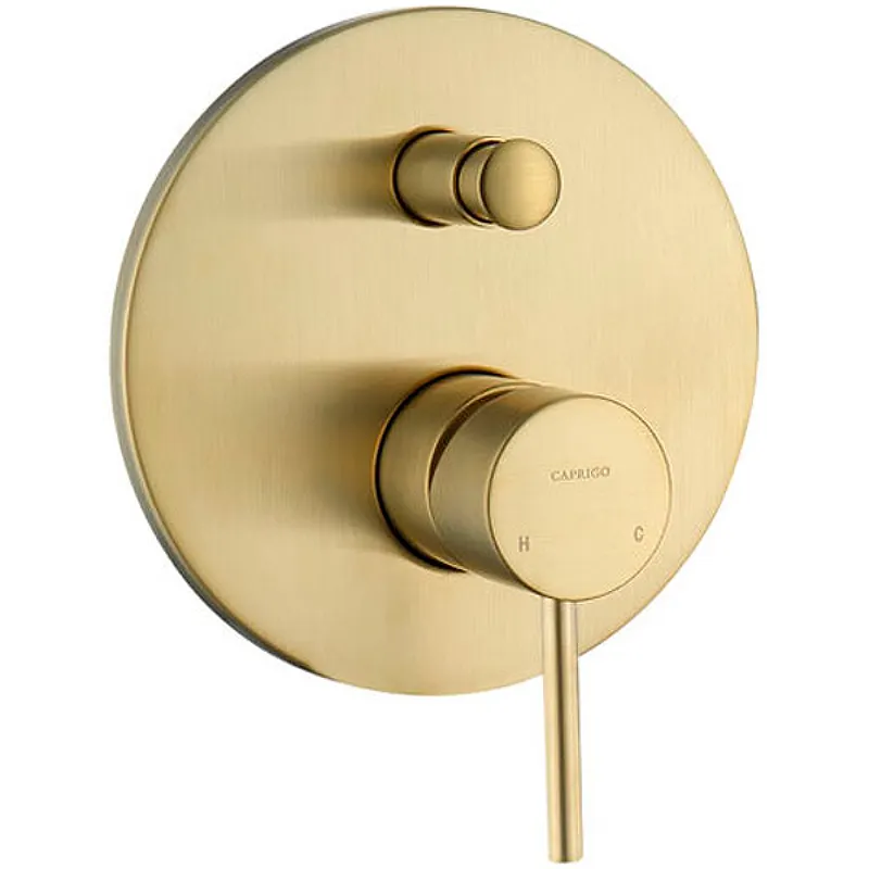 Смеситель для душа Caprigo Don 53-051-BRG в золоте матовом — идеальное решение для стильной и функциональной ванной комнаты. Выполнен из высококачественной латуни, он сочетает в себе долговечность и изысканный дизайн, идеально подходящий для встраиваемого монтажа.