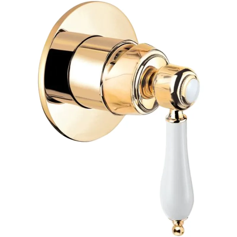 Смеситель для душа Cezares Aphrodite APHRODITE-DIM2-03/24-Bi — это идеальное решение для ванной комнаты с дизайном в стиле ретро. Изготовленный из латуни, он обладает глянцевой поверхностью и изысканным покрытием золота 24 карат, что придаёт интерьеру роскошный вид. Данный встраиваемый смеситель с однорычажным управлением обеспечивает удобство и точность регулировки температуры воды.