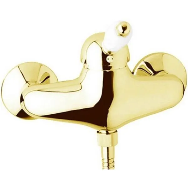 Смеситель для душа Cezares Elite DM-03. Артикул: ELITE-DM-03/24-Bi. Станет роскошным украшением Вашей ванной комнаты. Поможет в создании оригинального дизайна помещения в классическом или ретро стиле. Цвет корпуса: золото 24 карат. Цвет ручки: белый. Материал: высококачественный латунный сплав, который обеспечивает прочность, устойчивость к влаге и температурным перепадам. Керамический картридж. Изящный рычаг позволяет точно регулировать температуру и напор воды. Стандарт подключения: G 1/2. Монтаж: на стену. В комплекте поставки: смеситель.