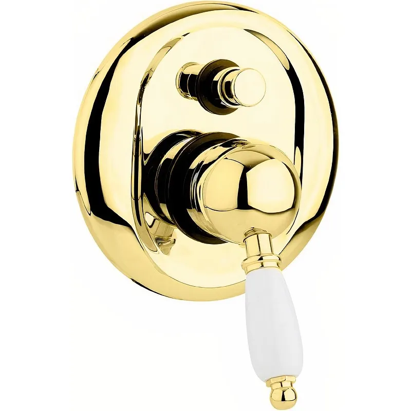 Смеситель для душа Cezares Elite ELITE-VDIM-03/24-Bi.Характеристики: Цвет: золото 24 карат. Материал: латунь. Ручка из керамики белого цвета. Управление: однорычажное. Механизм: керамический картридж. Дивертор. Стандарт подводки: G 1/2. Рабочий интервал давления в водопроводной сети: 0.5-6.0 Атм. Отверстия для монтажа: 1. Монтаж: встраиваемый. В комплекте поставки: Смеситель для душа (внешняя и внутренняя часть).