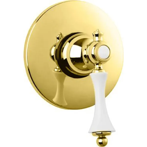 Настенный смеситель для душа Cezares Margot MARGOT-DIM-03/24-Bi однорычажный, встраиваемый в одно отверстие.Технические данные: Цвет: золото 24 карата. Цвет ручки: белый. Материал: латунь. Механизм: керамический картридж. Стандарт подключения: G 1/2. Рабочий интервал давления: 0,5-6 Атм. В комплекте поставки: внешняя часть смесителя; внутренняя часть смесителя; комплект креплений.