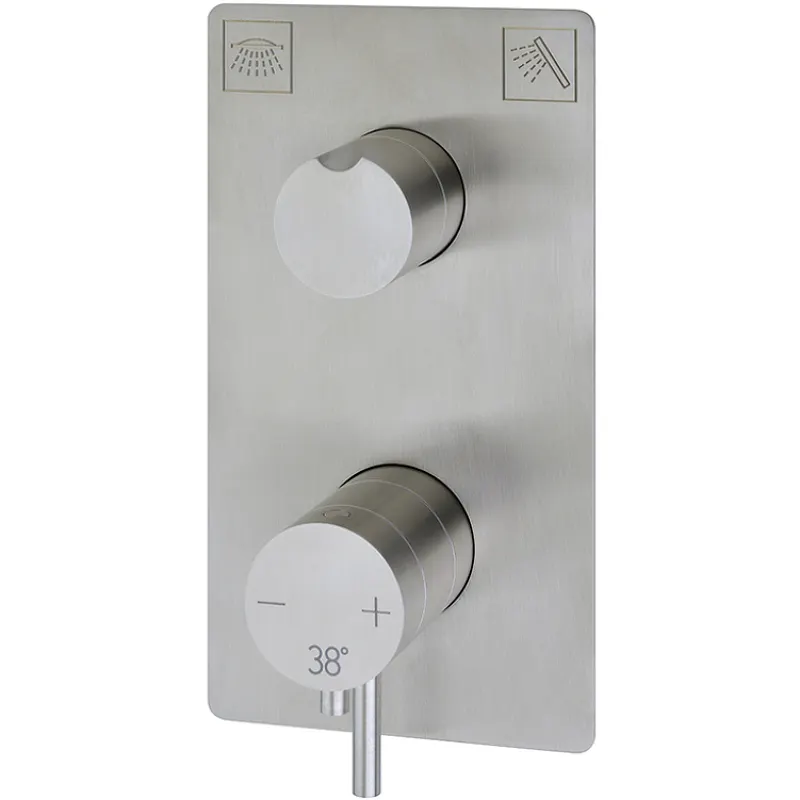 Встраиваемый смеситель для душа Cisal Xion XI008104D1 с термостатом выполнен из высококачественной нержавеющей стали. Этот современный смеситель идеально подходит для тех, кто хочет купить нержавеющий смеситель для душа с термостатическим управлением, обеспечивающим комфортное и безопасное использование.