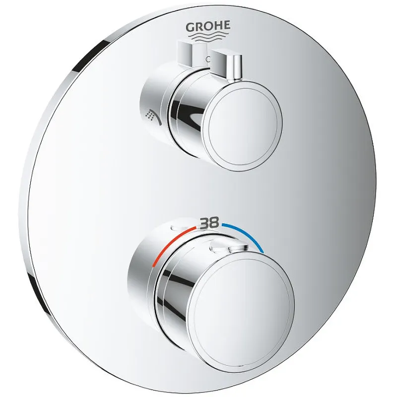- Безопасность использования: Оснащён функцией Grohe SafeStop, предотвращающей случайные ожоги при 38 градусах, а также дополнительным ограничителем температуры.