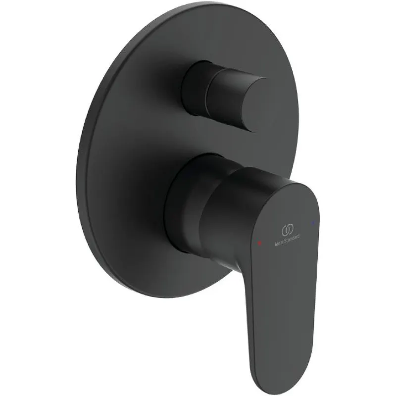 Смеситель для душа Ideal Standard Cerafine Model O A7193XG.Характеристики: Цвет: Silk Black (черный шелк). Материал: латунь, пластик. Управление: однорычажное. Механизм: керамический картридж 47 мм с функцией HWTC (ограничение максимальной температуры горячей воды). Функция Click (ограничение потока воды). Автоматическое переключение. Металлическая рукоятка с индикаторами горячей и холодной воды. Металлическая накладка. Одно отверстие для монтажа. Монтаж: в стену (скрытый). В комплекте поставки: Смеситель (внешняя и внутренняя часть).