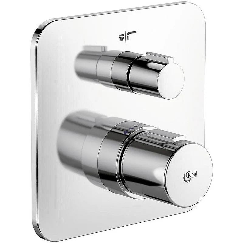 Смеситель для душа Ideal Standard Tonic II A6345AA с термостатом.Характеристики: Цвет: хром. Материал: латунь. Механизм: термостатический картридж. Затворы на керамических дисках G1/2 180 градусов. Клапаны на керамических дисках 90 градусов. Интегрированное переключение ванна/душ . Пластиковая рукоятка с ограничителем температуры 40 градусов. Металлическая накладка. Монтаж: встраиваемый. В комплекте поставки: Смеситель (внешняя часть).
