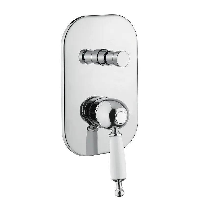Смеситель для душа Migliore Oxford 19138.Характеристики: Цвет: хром. Материал: высококачественный латунный сплав. Специальное лаковое покрытие защищает внешнюю часть смесителя от быстрого износа. Однорычажная система управления. Утонченная ручка выполнена в белом цвете. Керамический картридж. Переключатель потоков. Количество потоков: 2. Стандарт подключения: G 1/2. Монтаж: встраиваемый. В комплекте поставки: смеситель (внешняя и внутренняя часть).