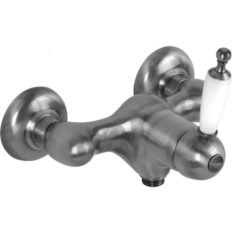 Однорычажный смеситель для душа Migliore Oxford 19214.Характеристики: Материал: латунь. Цвет: хром состаренный. Поверхность: глянцевая. Лаковое покрытие внешней части смесителя. Механизм: керамический картридж. Оснащение: скрытые S-образные эксцентрики. Вид крепления: на стену. Тип подводки: жесткая. Стандарт подводки: G 1/2. Количество монтажных отверстий: 2. Совместим с проточным водонагревателем. В комплекте поставки: Смеситель.