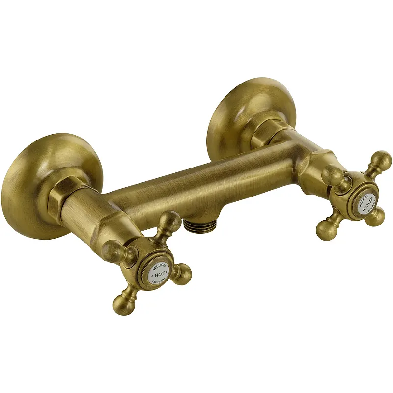 Смеситель для душа Migliore Revival 19490.Характеристики: Цвет: бронза. Материал: латунь. Управление: двухвентильное. Механизм: керамическая кран-букса. Стандарт подключения: G 1/2. Монтаж: на стену. Количество монтажных отверстий: 2. Защита от обратного потока. Совместимость с проточным водонагревателем. В комплекте поставки: Смеситель.