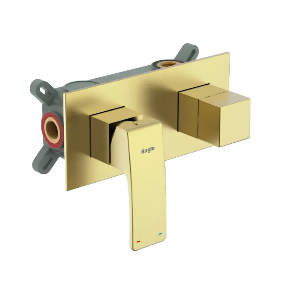 Корпус смесителя + внутренняя часть Raglo R01.273.03, 3-режима, золотой сатин (брашированное золото). Встраиваемый монтаж. Керамический картридж 35 мм.Рычажное рычажное + кнопочное.