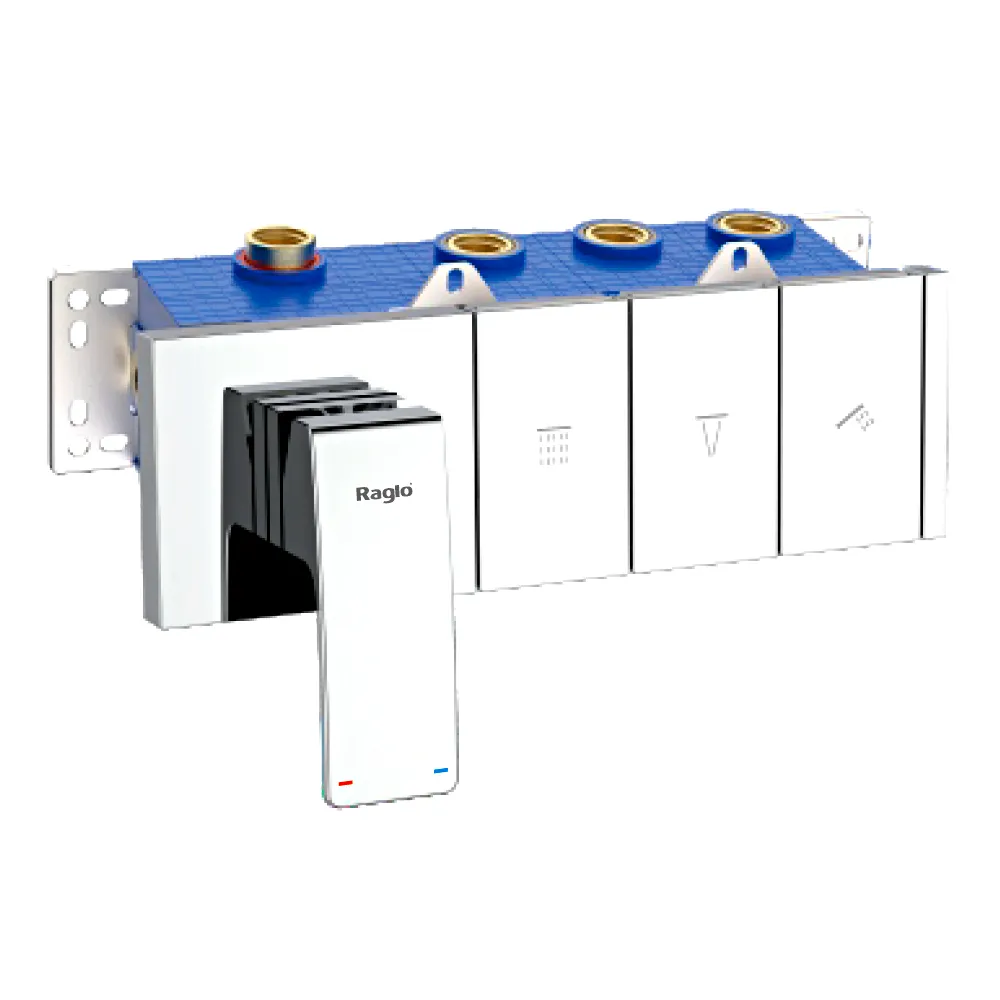 Корпус смесителя + внутренняя часть Raglo R02.273, 3-режима, хром. Встраиваемый монтаж. Керамический картридж 40 мм. Управление рычажное + кнопочное.