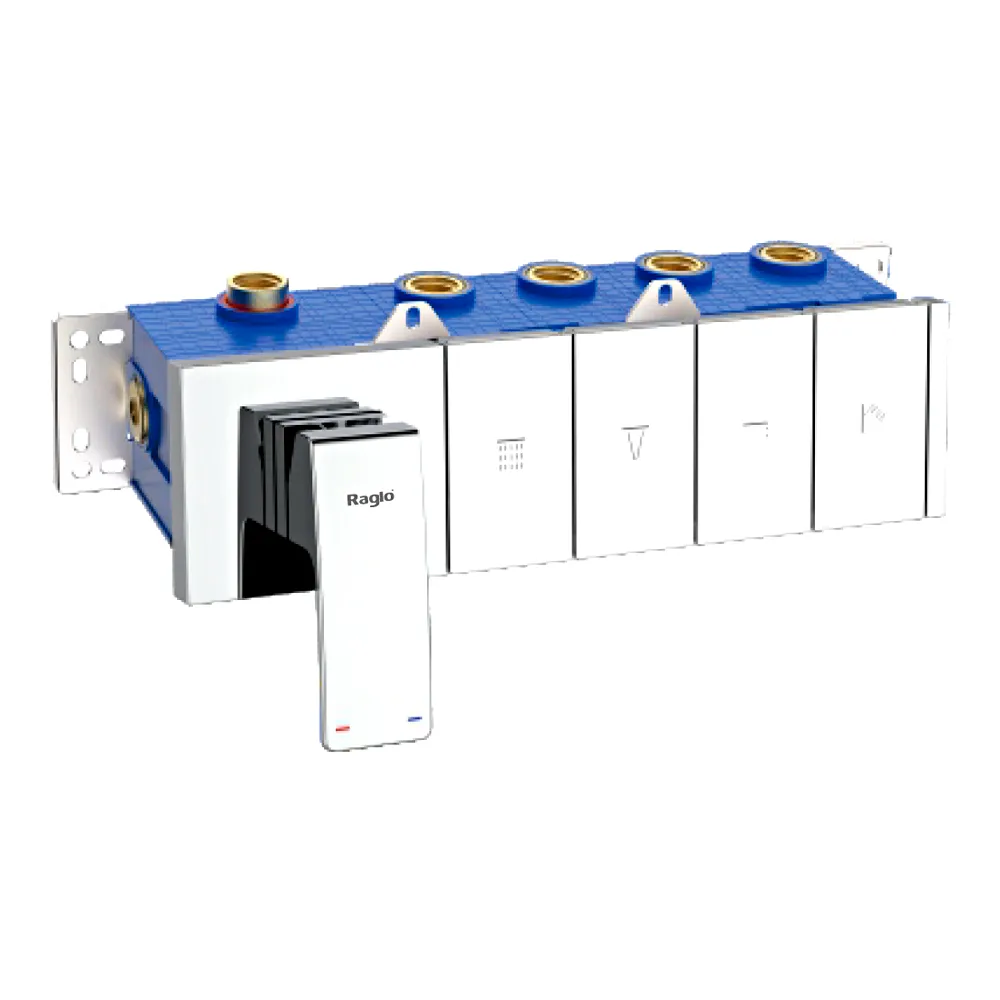 Корпус смесителя + внутренняя часть Raglo R02.274, 4-режима, хром. Встраиваемый монтаж. Керамический картридж 40 мм. Управление рычажное + кнопочное.