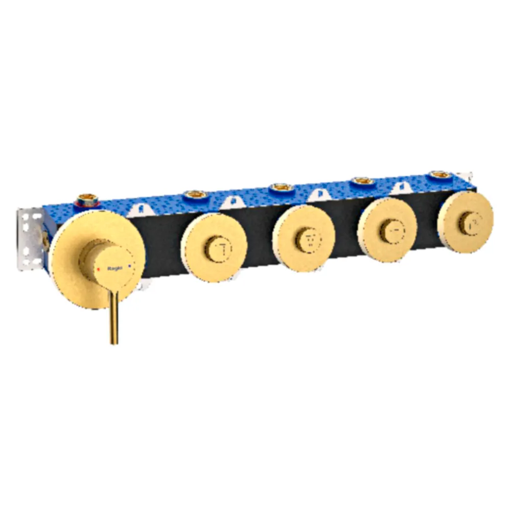 Корпус смесителя + внутренняя часть Raglo R20.274.03, 4-режима, золотой сатин (брашированное золото). Встраиваемый монтаж. Керамический картридж 40 мм. Управление рычажное + кнопочное.