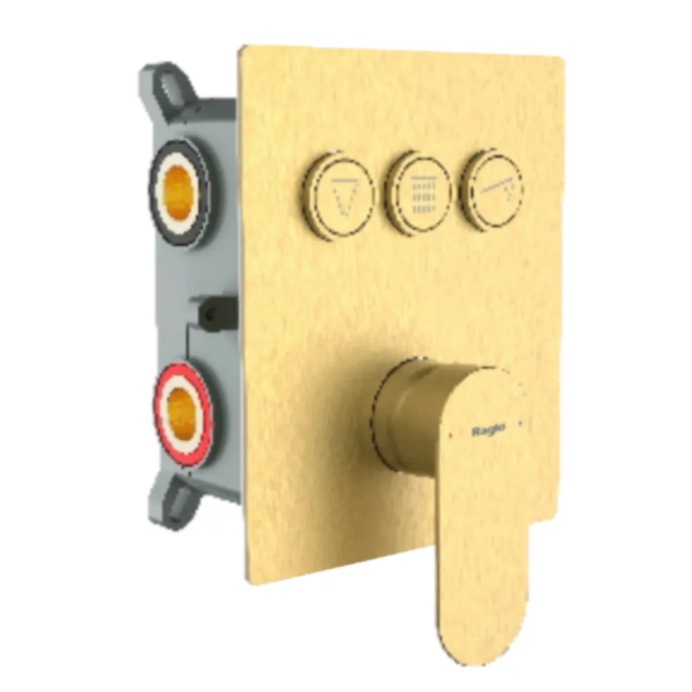 Корпус смесителя + внутренняя часть Raglo R50.273.03, 3-режима, золотой сатин (брашированное золото). Встраиваемый монтаж. Керамический картридж 40 мм. Управление рычажное + кнопочное.