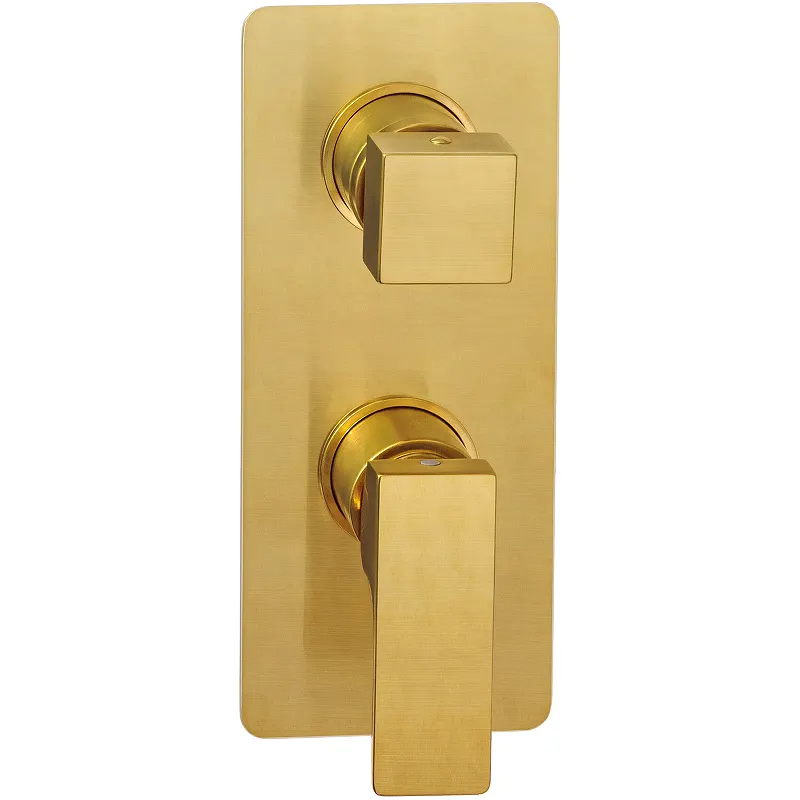 Смеситель для душа Remer Absolute AU92BG в золоте брашированном выполнен из высококачественной латуни, что обеспечивает надежность и долговечность использования. Встраиваемая конструкция и современный дизайн делают его идеальным выбором для стильных ванных комнат.