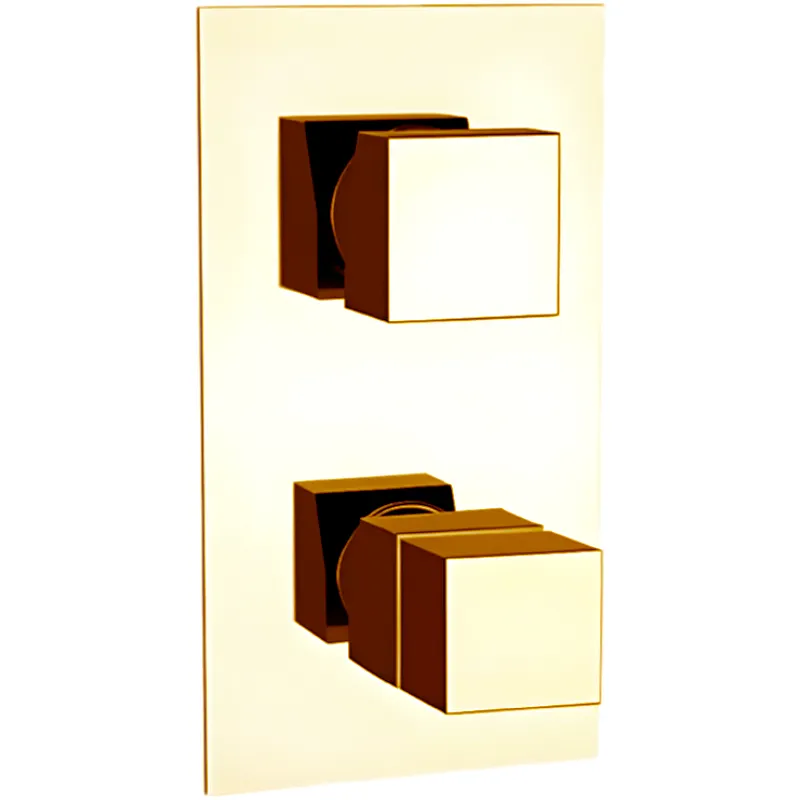 Смеситель для душа Remer Qubica Thermo QT92KBDO — идеальное решение для тех, кто ценит стиль и функциональность. Этот встраиваемый смеситель выполнен в глянцевом золотом цвете и оснащён термостатом, что гарантирует комфортное и безопасное использование.