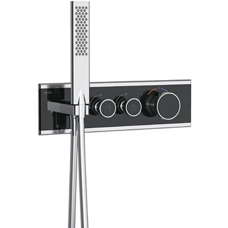 Смеситель для душа Teska Shine SH2002 с термостатом — это идеальное решение для создания стильного и функционального интерьера ванной комнаты. Изготовленный из латуни с глянцевой поверхностью, он сочетает в себе хром и черное стекло, что придает ему современный и элегантный вид. Встраиваемый монтаж позволяет аккуратно интегрировать смеситель в ваш душевой уголок, обеспечивая экономию пространства и удобство использования.