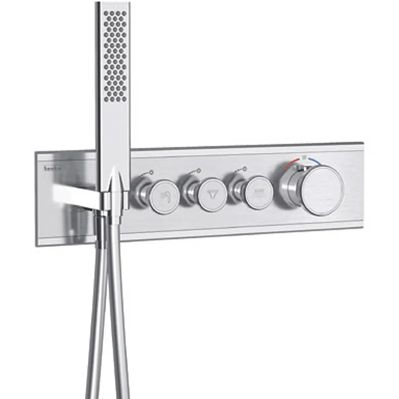 - Комплексное оснащение душевым гарнитуром: включает верхний душ, ручной душ и излив.