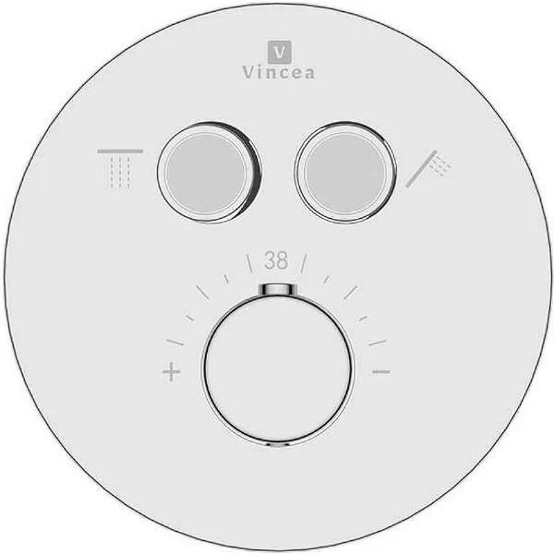 Смеситель для душа Vincea VSCV-322T-MCH с термостатом.Характеристики: Цвет: хром. Материал: латунь. Управление: термостат. Механизм: термостатический картридж. Переключатель для 2-х потребителей: ручного и верхнего душа. Предохранительная остановка при 38 градусах. Стандарт подводки: G 1/2. Монтаж: встраиваемый. В комплекте поставки: Смеситель (внешняя и внутренняя часть).