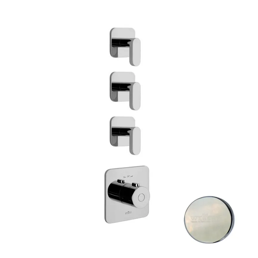 Смеситель для душа термостатический встраиваемый Webert Living с запорным вентилем, на 3 потока. Внутренняя часть в комплекте. Материал: латунь.