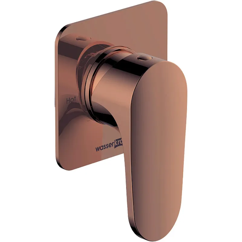 Смеситель для душа WasserKRAFT Asphe 7751.Смеситель на 1 выход. Подключается к одному аксессуару для душа на выбор: верхней душевой насадке, лейке для душа или гигиенической, настенному изливу.Характеристики: Цвет: розовое золото. Материал: латунь. Покрытие: PVD. Механизм: керамический картридж 35 мм, Sedal (Испания). Управление: рычажное. Рабочее давление - 1-5 Bar, максимальное - 9 Bar. Рабочая температура - оптимальная 65 градусов, максимальная 90 градусов. Ресурс керамических картриджей - 500 000 открытий и закрытий. Монтаж: встраиваемый. Уход: При регулярной очистке поверхностей смесителей рекомендуем применять нейтральные жидкие моющие средства. Таковыми являются мыльные растворы и многие посудомоечные средства. Не использовать средства, содержащие органические растворители, абразив и разъедающие вещества: хлорные соединения, соляную, серную, азотную, уксусную или фосфорную кислоту. В комплекте поставки: Смеситель (внешняя и внутренняя часть).