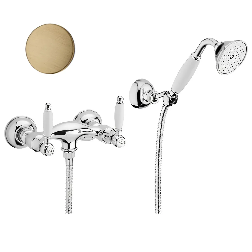 Смеситель для душа Webert Dorian в стиле ретро. Изготовлен на заводе в Италии из высококачественной латуни. Душевой гарнитур и держатель лейки в комплекте.