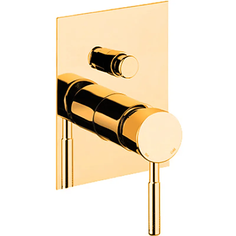 Смеситель для душа Rimini RI860101010.Характеристики: Цвет: золото. Материал: латунь. Управление: однорычажное. Механизм управления: керамический картридж. Стандарт подводки: 1/2. Тип подводки: жесткая. Монтаж: встраиваемый. Отверстие для монтажа: 1. В комплекте поставки: смеситель (внешняя и внутренняя части).