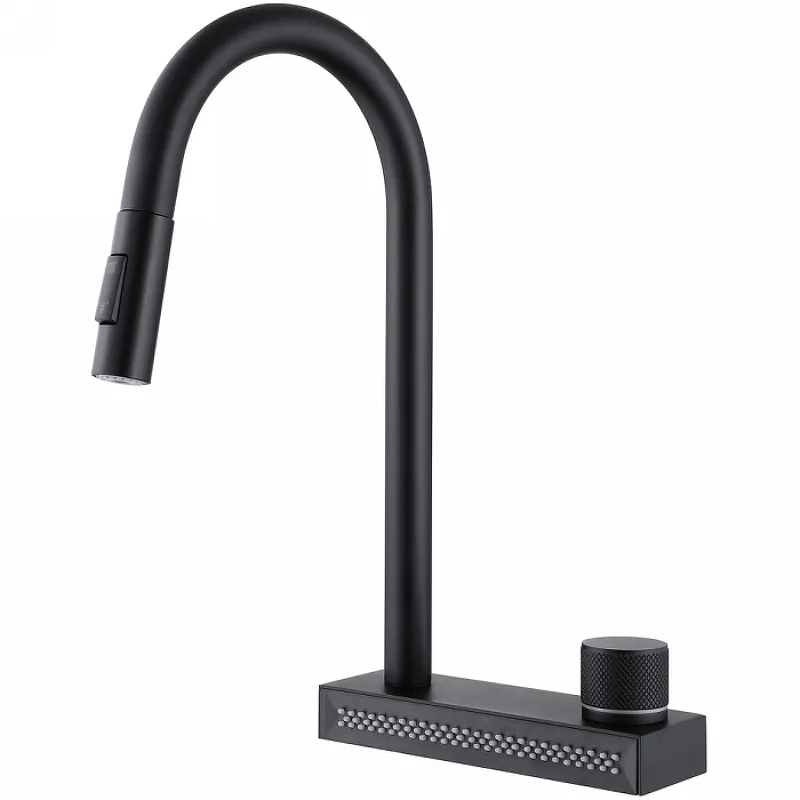 - Стильный дизайн: Современный черный матовый смеситель гармонично впишется в интерьер любой кухни.