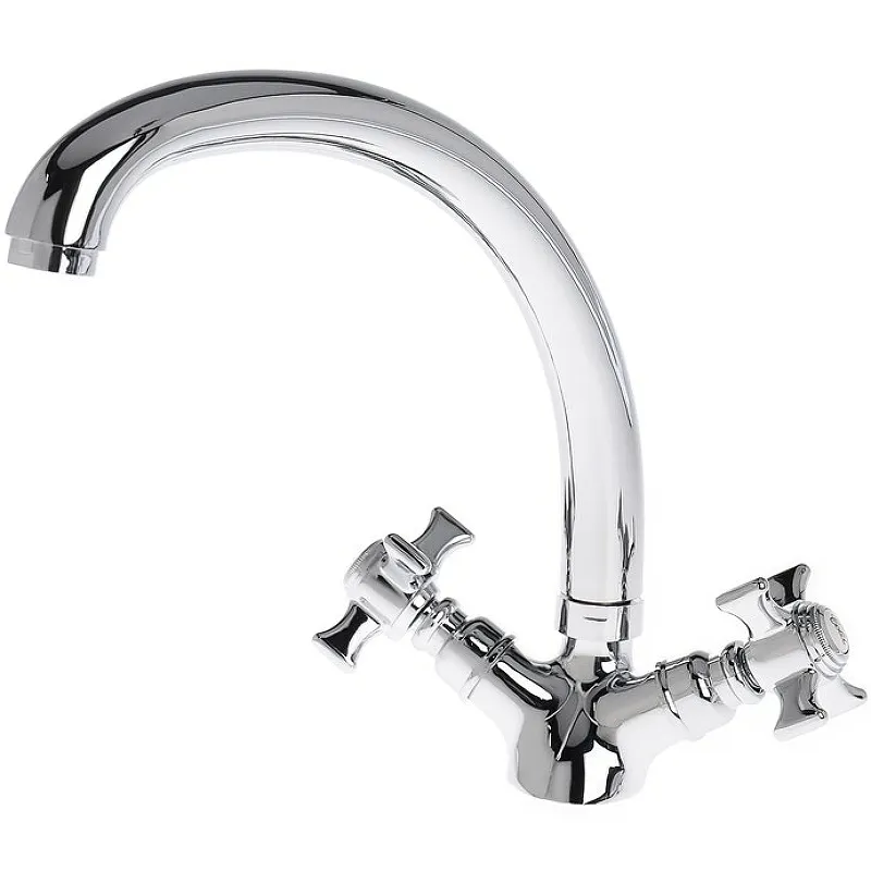 Смеситель для кухни Agger Retro-X A1700200 – двухзахватный с аэратором, для отсутствия разбрызгивания воды. Выполнен в стиле ретро. Корпус смесителя изготовлен из качественного латунного сплава и оснащен двумя керамическими кран-буксами, которые позволяют контролировать напор воды и регулируют температуру. Средний поворотный излив дает возможность универсального использования смесителем во время мытья посуды. Основные характеристики:Цвет: хром глянцевый.Материал: латунь.Управление: двухвентильный.Механизм: керамическая кран-букса.Тип подводки: гибкая G 1/2.В комплекте поставки: Смеситель; Гибкая подводка; Набор креплений; Инструкция.