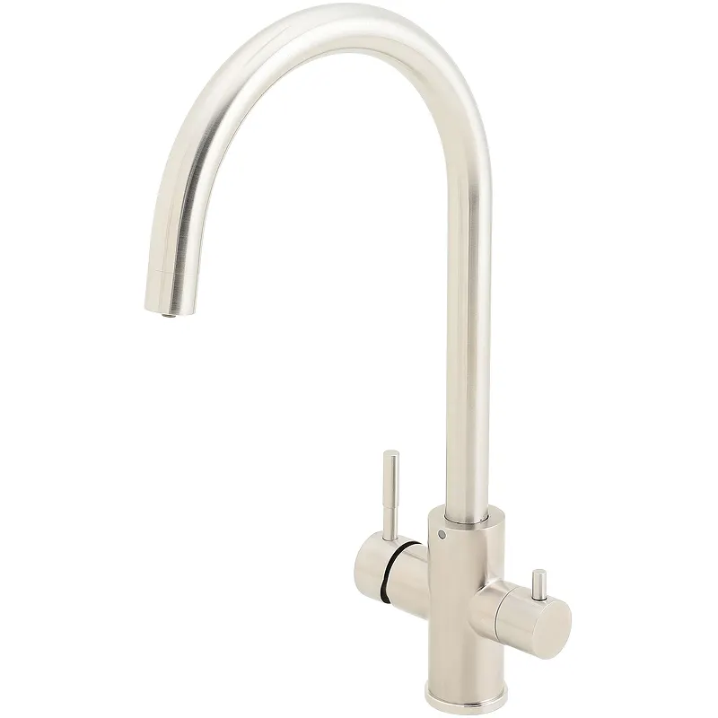 Цвет: никель. Материал: латунь. Керамический картридж. Отдельный канал для подачи фильтрованной воды. Стандарт подключения: G1/2. В комплекте поставки: смеситель.