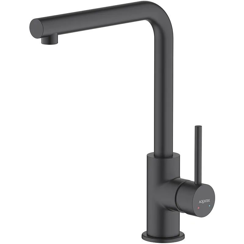 Смеситель для кухни Aquatek Европа AQ1380MB.Характеристики: Цвет: черный матовый. Материал: латунь. Управление: однорычажное, система регулировки силы струи и температуры воды. Механизм: керамический картридж Citec 35 мм. Излив: поворотный (вращение на 360 градусов). Аэратор Neoperl. Легкая очистка аэратора. Тип резьбового соединения: M10. Стандарт подводки: G 1/2. Тип подводки: гибкая, длиной 600 мм. Отверстия для монтажа: 1. Монтаж: на мойку/на столешницу. В комплекте поставки: Смеситель для кухни. Гибкая подводка. Монтажный комплект.