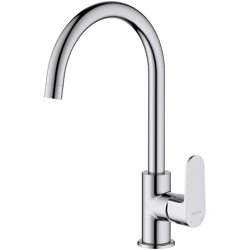 Смеситель для кухни Aquatek Оберон AQ1282CR.Характеристики: Цвет: хром. Материал: латунь. Управление: однорычажное, система регулировки силы струи и температуры воды. Механизм: керамический картридж Citec 35 мм. Излив: поворотный (вращение на 360 градусов). Аэратор Neoperl. Легкая очистка аэратора. Тип резьбового соединения: M10. Стандарт подводки: G 1/2. Тип подводки: гибкая, длиной 600 мм. Отверстия для монтажа: 1. Монтаж: на мойку/на столешницу. В комплекте поставки: Смеситель для кухни. Гибкая подводка. Монтажный комплект.