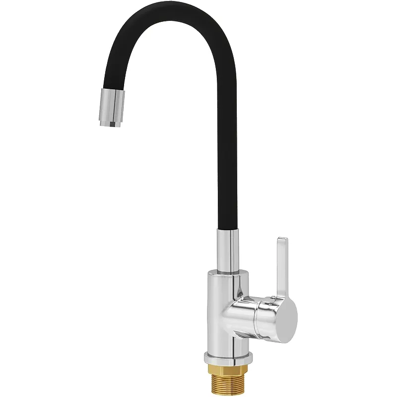 - Эстетичный дизайн: Хромированный корпус в сочетании с черным изливом подчеркивает современный стиль интерьера, добавляя кухне изысканности.