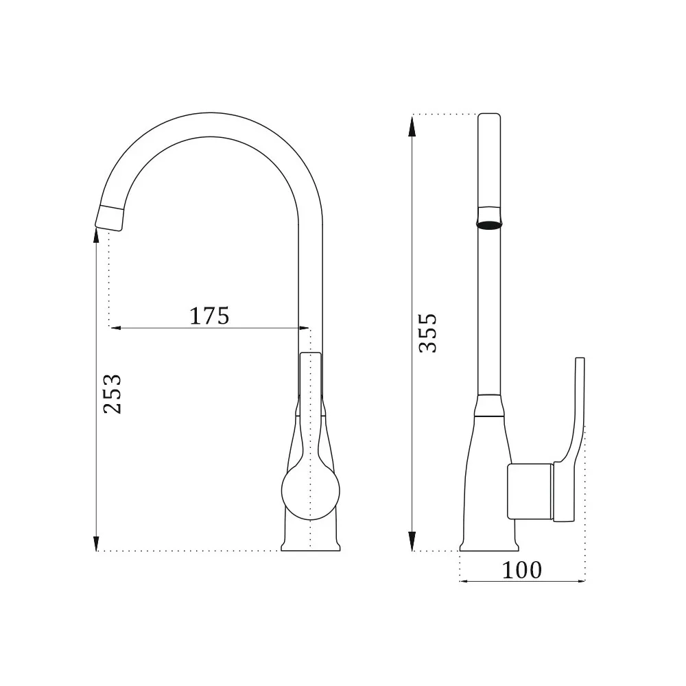 Высокий смеситель для кухни BELZ . Керамический картридж 35 мм. Поворотный излив. Гибкая подводка 45 см. Усиленная гайка крепления смесителя.