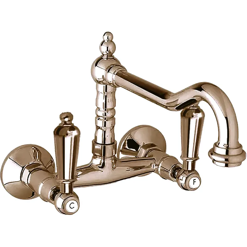 Смеситель для кухни Cezares First-LLP-02-M.Настенный двухвентильный смеситель с поворотным изливом и аэратором, монтируемый в два отверстия. Имеет долгий срок эксплуатации за счет качественных деталей, неприхотлив в уходе. Станет прекрасным дополнением кухни в классическом или ретро стиле.Характеристики: Цвет корпуса: бронза. Цвет ручек: бронза. Материал: латунь с гладким покрытием, которое не теряет цвет со временем, устойчиво к царапинам и превосходно защищает от коррозии. Излив: поворотный. Управление: вентильное. Механизм: керамическая кран-букса. Отверстия для монтажа: 2 отверстия. Установка: настенный. Рабочий интервал давления: 0,5 - 6 Атм. Стандарт подключения: G 1/2. В комплекте поставки: Смеситель. Эксценрики. Аэратор.