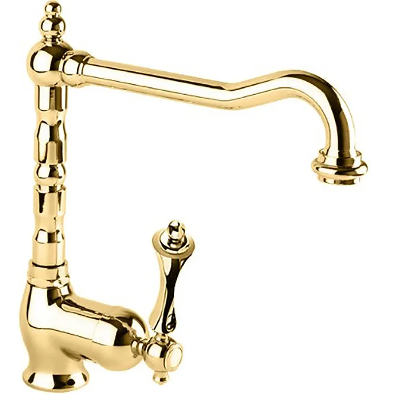 Смеситель для кухни Cezares Margot MARGOT-LLM2-03/24-M однорычажный с поворотным изливом.Коллекция Margot от производителя Cezares это утонченные классические линии корпуса и разнообразие ручек смесителей. Этот образец безупречного мастерства несомненно создаст изысканный акцент в интерьере. Практичность изделия позволит использовать его с удобством и наслаждением.Характеристики: Цвет: золото 24 карат. Материал: латунь. Цвет ручки: золото 24 карат. Управление: однорычажное. Стандарт подводки: G 1/2. Тип подводки: гибкая. Механизм: керамический картридж. Отверстия для монтажа: 1 отверстия. Монтаж: на мойку, на столешницу. С аэратором. Излив: поворотный. Форма излива: традиционная. Рабочий интервал давления: 0.5-6 Атм. В комплекте поставки: смеситель.